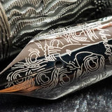 The artisans of Montegrappa have fashioned a form that encompasses the myriad symbols embedded in the story. Using the lost wax technique of casting, the pen is decorated with representations of the Sun and the Moon on the cap, the band onto which Sun and Moon are attached incorporating a rotating mechanism that gives the same tactile sensation as the winding and time-setting of a mechanical watch.