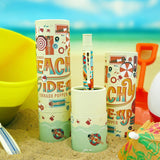 Dive into summer with Retro51's Summer Tornado Popper™, Beachy Side-Up. This fun design gives you a bird's eye view of the coastline, where sandy shores stretch for miles and beachgoers lounge under umbrellas, enjoying their sunbathing and summer vibes. You will be immersed into the ultimate summer scene - vibrant, carefree, and relaxation to the fullest. Amidst the serene sands and leisurely vibes, a playful twist awaits so keep an eye out for the baby shark cutting through the waters, adding an unexpected dash of excitement to your writing adventures.