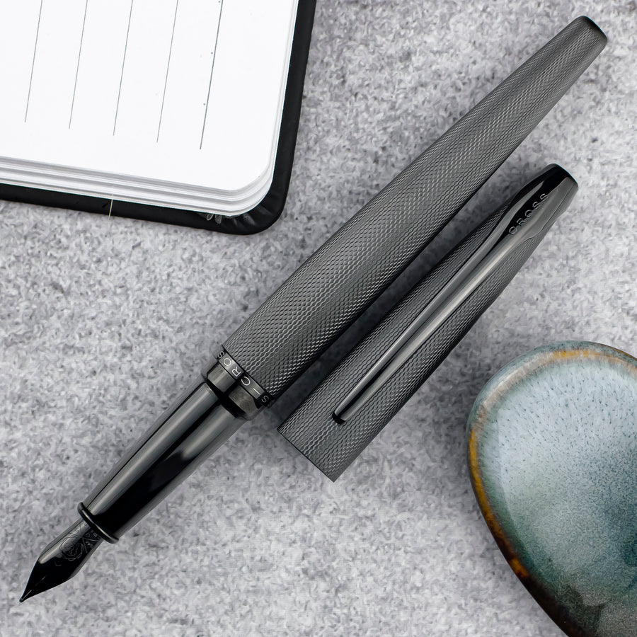 Its sleek silhouette is sharply dressed in diamond-patterned, machine-turned engravings on blackened steel and copper tones for an unmistakably bold look.